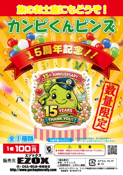 本イベントにあわせ、15周年を記念した特別仕様の「カンピくんピンズ」を数量限定にて販売いたします。