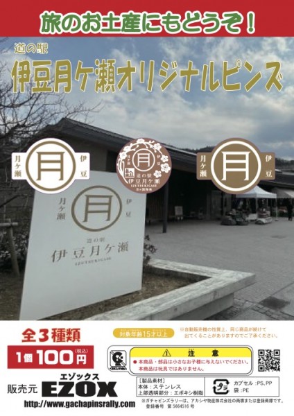トップページ > 一覧ページから地域を探す > >静岡版ガチャピンズラリー > >静岡版ガチャピンズラリー お知らせ一覧 > 静岡県 道の駅 伊豆月ケ瀬 オリジナルピンズ 設置販売中!